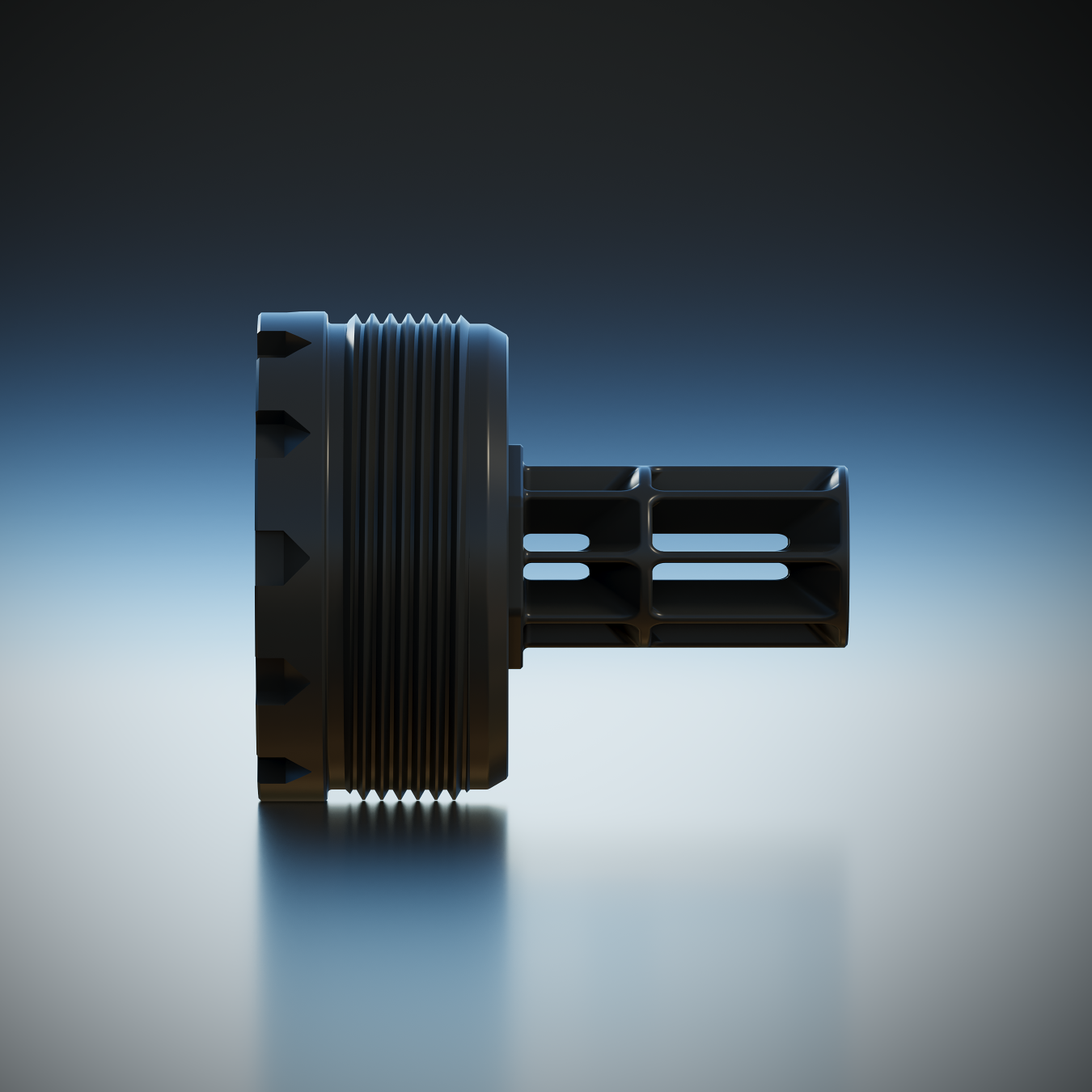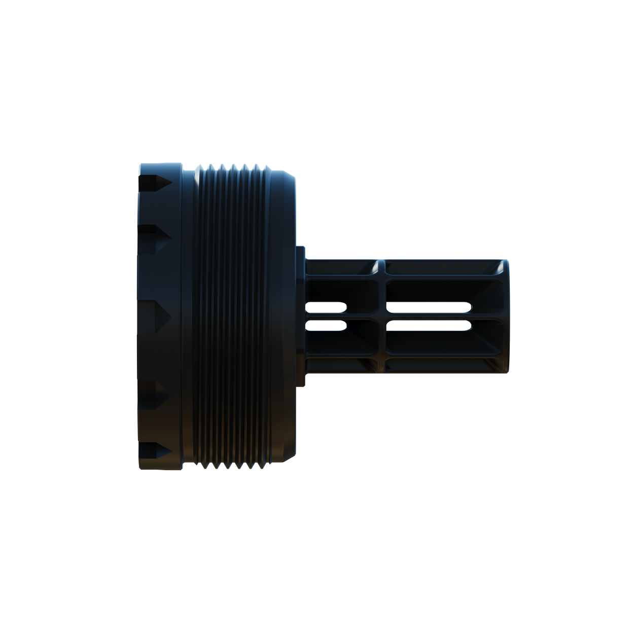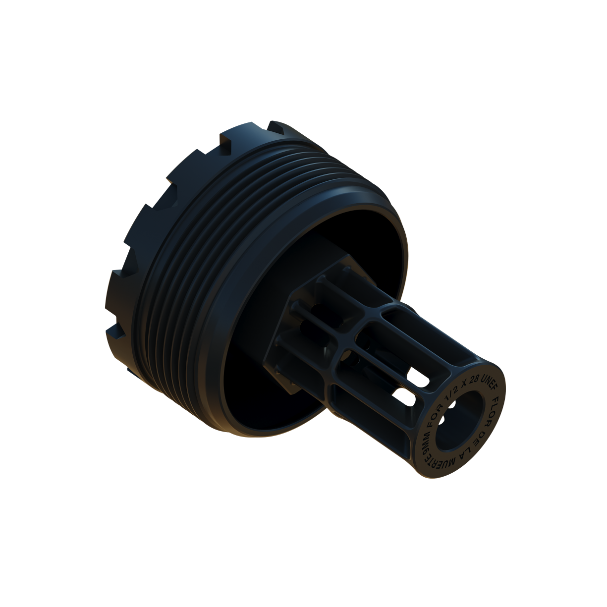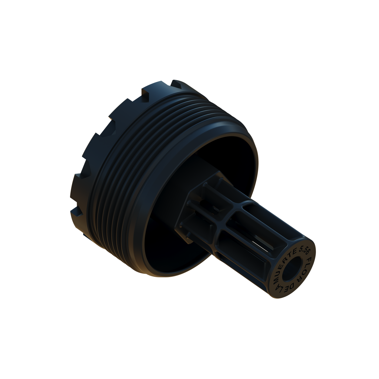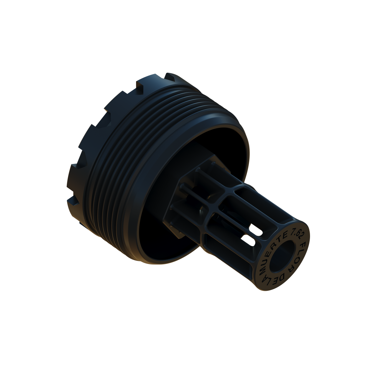 Available as a standalone item, Flor De La Muerte ships as the standard muzzle adapter for Whiskey Quebec and Whiskey Quebec Purged suppressors.
