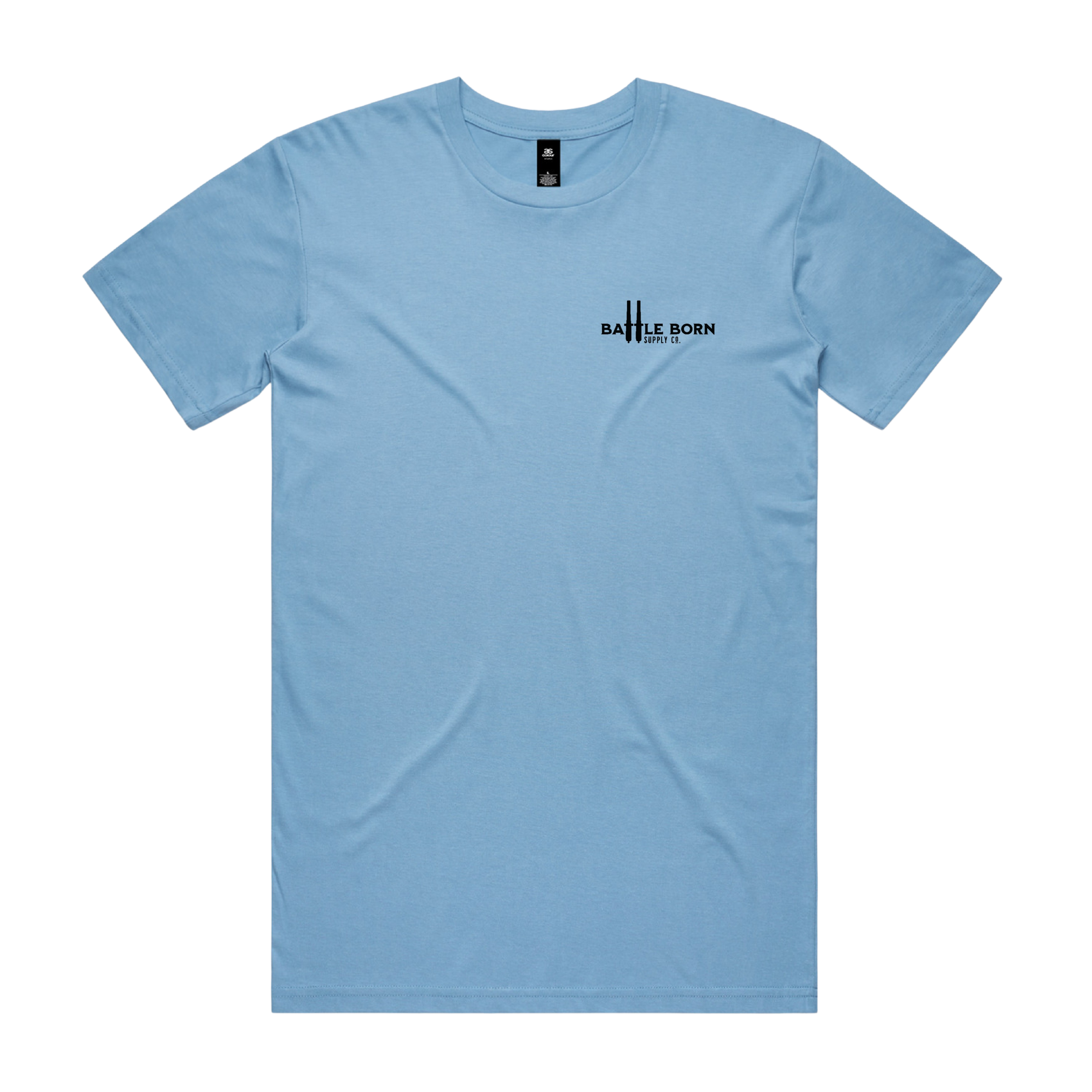 The Battle Born Supply Co. The Rest Is Just Noise Premium Tee in blue provides enduring comfort with a regular fit, crafted from 5.3 oz 100% combed cotton. Featuring neck ribbing, side seams, and double-needle hems for durability and minimal shrinkage, it’s a timeless choice for comfort and style, and it’s built to last.
